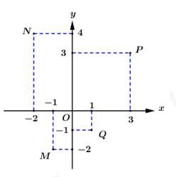 c) Dựa vào hình vẽ ta có: \(Q\left( {1; – 1} \right)\) nên tung độ điểm \(N\) là \({y_Q} =  – 1\).