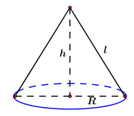 Áp dụng định lý Pitago ta có chiều cao của hình nón là: \(h = \sqrt {{l^2} – {R^2}}  = \sqrt {{{13}^2} – {5^2}}  = 12\,\,cm.\)