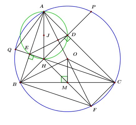 \( \Rightarrow \) Đường tròn ngoại tiếp \(\Delta AED\) là đường tròn ngoại tiếp tứ giác \(AEDH.\)