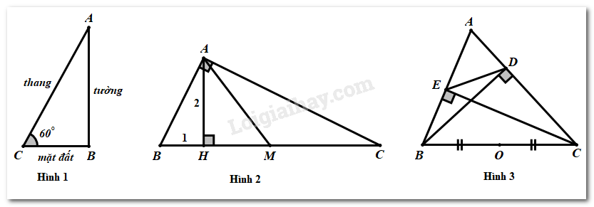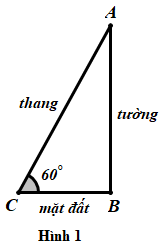 Câu 7. Một cái thang dài \(5m\), đặt tạo với mặt đất một góc bằng \({60^0}\) (Hình 1). Vậy chân thang cách tường bao nhiêu mét?