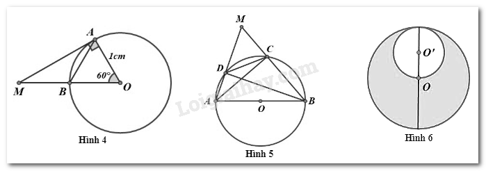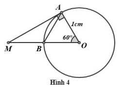 Câu 10. Cho đường tròn tâm \(O\) bán kính bằng \(1cm\), cung \(AB\) bằng \(60\) độ. Tiếp tuyến tại \(A\) cắt \(OB\) tại \(M\) (Hình 4). Tính độ dài \(AM\).