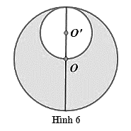 Câu 12. Cho hai đường tròn \(\left( {O;2} \right)\) và \(\left( {O’;1} \right)\) tiếp xúc (Hình 6). Tính diện tích miền tô đậm tạo bởi đường tròn \(\left( O \right)\) và đường tròn \(\left( {O’} \right)\).