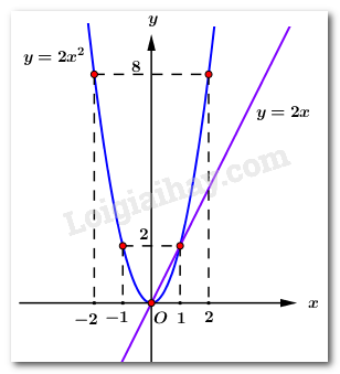 Do đó đồ thị hàm số \(y = 2{x^2}\) là đường cong đi qua các điểm \(\left( { – 2;8} \right)\), \(\left( { – 1;2} \right)\), \(\left( {0;0} \right)\), \(\left( {1;2} \right)\), \(\left( {2;8} \right)\).