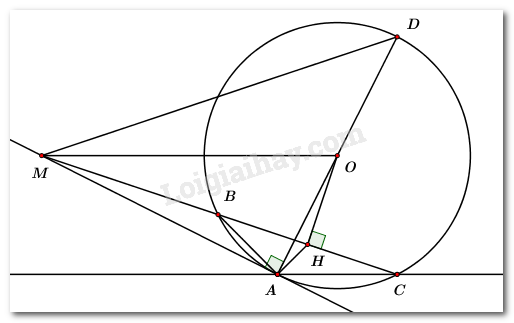 \( \Rightarrow \angle OAH = \angle MAB\,\,\left( { = \angle ACM} \right).\)