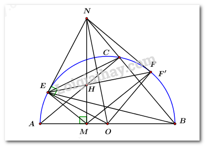 Kẻ tiếp tuyến \(NF’\) với nửa đường tròn \(\left( O \right).\)