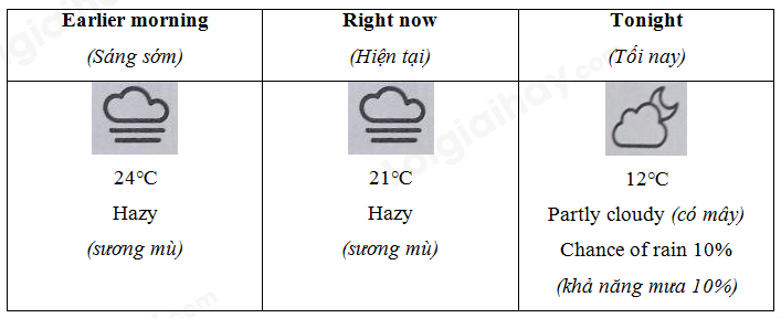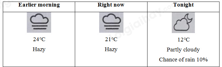 (Nhìn vào bản dự báo thời tiết và khoanh tròn chữ cái A, B, C hoặc D để chọn đáp án đúng.)
