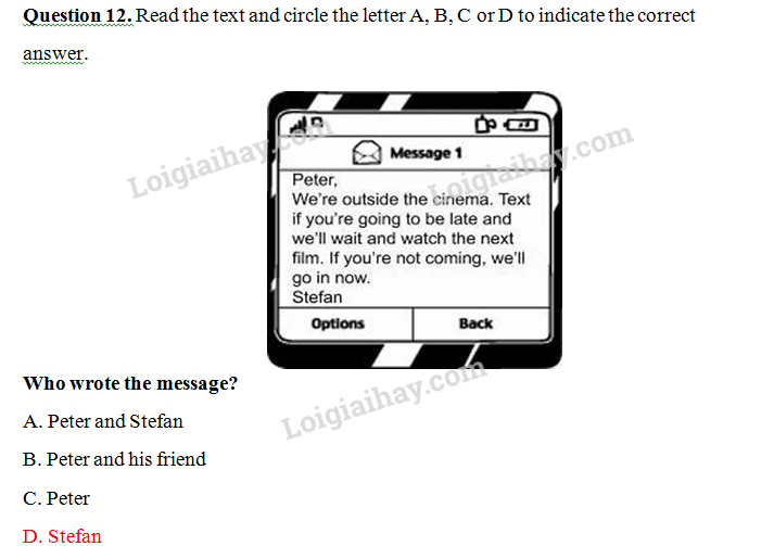(Đọc tin nhắn và khoanh tròn chữ cái A, B, C hoặc D để chọn đáp án đúng.)