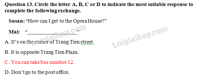 Question 13. Circle the letter A, B, C or D to indicate the most suitable response to complete the following exchange.