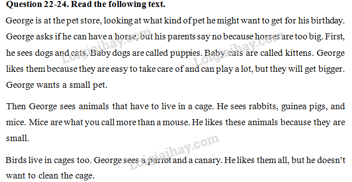 George likes puppies and kittens because they are easy to take care of and can play a lot, but they will get (23) bigger.