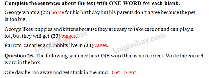 Question 25. The following sentence has ONE word that is not correct. Write the correct word in the box. (Câu sau có MỘT từ không đúng. Viết từ đúng vào trong khung.)