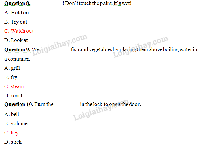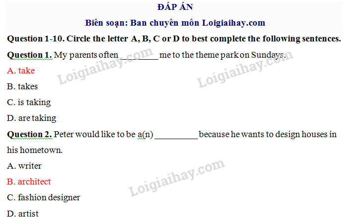 Question 1-10. Circle the letter A, B, C or D to best complete the following sentences.