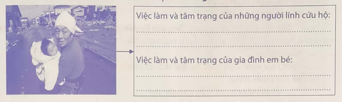 – Việc làm và tâm trạng của những người lính cứu hộ: Tâm trạng vui mừng khôn xiết vì cứu được một sinh mệnh. Việc làm: ôm bé thật chặt thể hiện sự yêu thương vỗ về, trấn an bé.