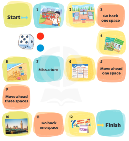 (Trò chơi trên bàn cờ. Lắc xúc xắc. Nghe và trả lời.)
