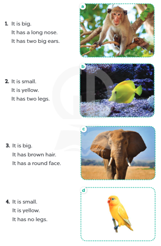 Work in pairs. Take turns to describe and draw a family member. Tell the class about your partner’s family member. Read and match. Then say what the animals are.