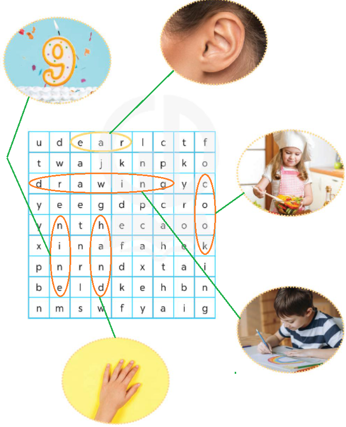 (Tìm, khoanh tròn, và nối.)