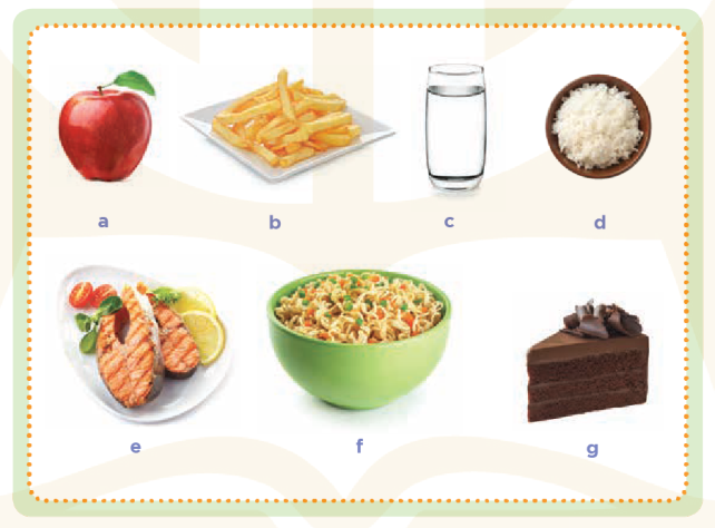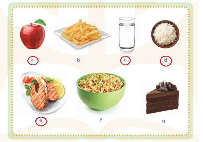 (Khoanh tròn những thực phẩm dinh dưỡng lành mạnh.)