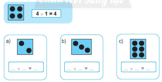 Quan sát tranh em viết phép nhân thích hợp vào chỗ chấm theo mẫu.