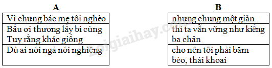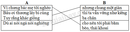 Nối nội dung ở cột A với nội dung ở cột B để hoàn thiện câu: