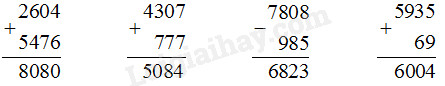 – Đặt tính rồi tính các số cùng hàng theo thứ tự lần lượt từ trái sang phải.