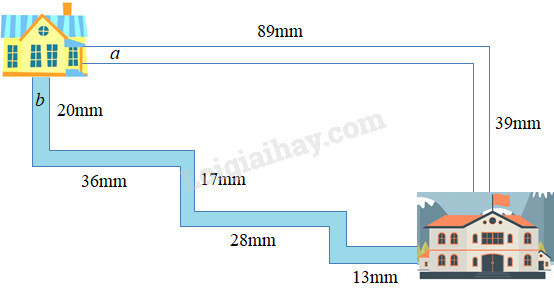Vì 128 mm > 124 mm nên đoạn đường b ngắn hơn.