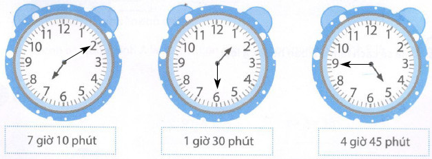Vẽ thêm kim phút để đồng hồ chỉ thời gian tương ứng: