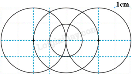 – Chọn tâm rồi vẽ các hình tròn hoặc nửa hình tròn bán kính 1cm; 2cm để tạo được hình giống với hình mẫu.