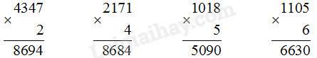 Thực hiện phép nhân, lấy thừa số thứ hai nhân với từng chữ số của thừa số thứ nhất theo thứ tự từ phải sang trái, chú ý số cần nhớ.