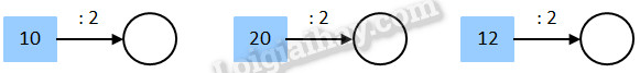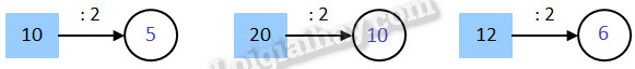 Thực hiện phép chia một số với 2 rồi điền kết quả vào chỗ trống.