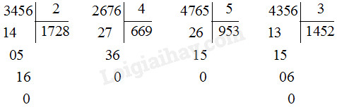 Đặt tính và tính phép chia số có bốn chữ số cho số có một chữ số.