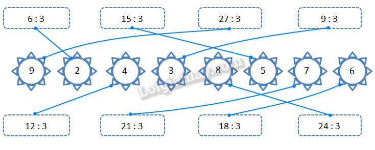 Nối phép chia với số (kết quả) thích hợp (theo mẫu):