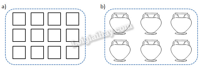 Tô màu vào \(\dfrac{1}{3}\) số hình trong mỗi hình vẽ sau: