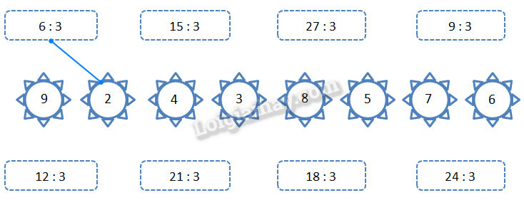 Nối phép chia với số (kết quả) thích hợp (theo mẫu):