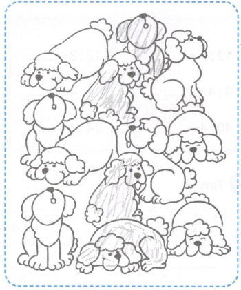 – Tô màu số cún có màu đặc biệt (chúng luôn nằm giữa  hai con màu trắng)