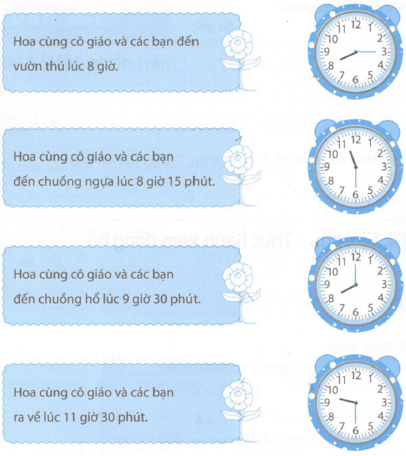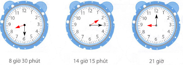 – Giờ tròn: Kim phút chỉ vào số 12; kim giờ chỉ vào đúng số giờ.