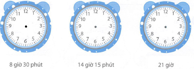 – Giờ tròn: Kim phút chỉ vào số 12; kim giờ chỉ vào đúng số giờ.