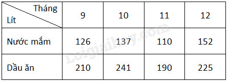 Dưới đây là bảng thống kê số lít nước mắm và số lít dầu ăn của một cửa hàng đã bán được trong 4 tháng cuối năm trước :