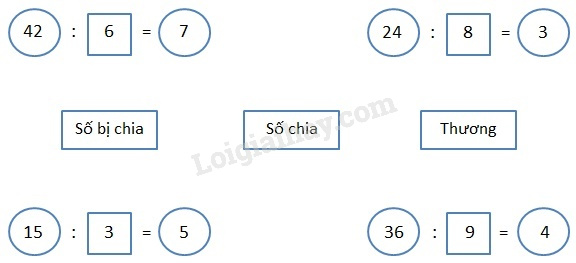 Các số trong một phép chia có tên gọi theo thứ tự lần lượt là: