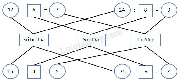 Nối mỗi số trong phép chia với tên gọi của nó: