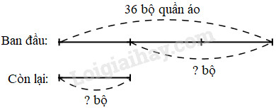 – Tìm số quần áo đã bán bằng cách lấy số bộ quần áo ban đầu trừ đi số bộ quần áo còn lại.