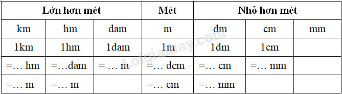 Nhẩm lại kiến thức đã học về các đơn vị đo độ dài rồi điền số thích hợp vào chỗ trống.