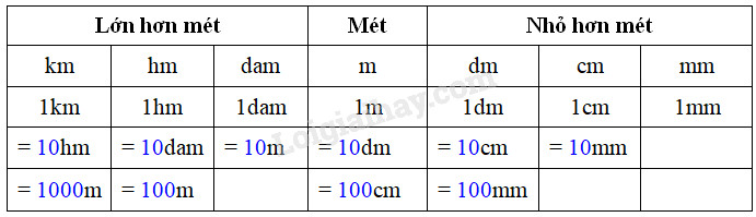 Nhẩm lại kiến thức đã học về các đơn vị đo độ dài rồi điền số thích hợp vào chỗ trống.