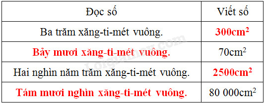 – Đơn vị xăng-ti-mét vuông được kí hiệu là cm2.