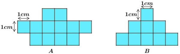 Đếm số ô vuông của hình A và hình B rồi viết số thích hợp vào chỗ trống.