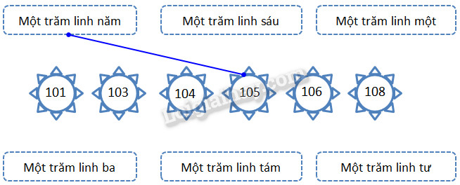 Nối cách đọc số có ba chữ số với cách viết của số đó, số có hàng chục là 0 thì em đọc bằng từ “linh”.