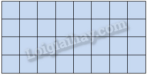 b) Có  8 cột, mỗi cột có 4 ô vuông. Số ô vuông trong hình chữ nhật là: 4 × 8 = 32 (ô vuông).