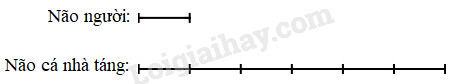 – Vẽ hình biểu diễn theo tỷ lệ \(\dfrac{1}{6}\). Nếu não người được biểu diễn bằng một đơn vị thì não cá nhà táng được biểu diễn bằng 6 đơn vị như vậy.