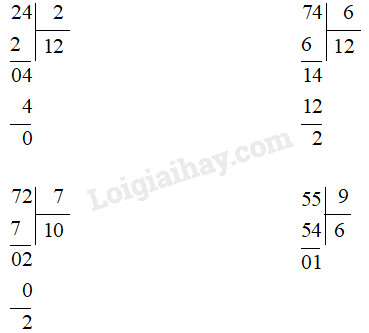 Đặt tính và tính giá trị phép chia số có hai có hai chữ số với số có một chữ số.