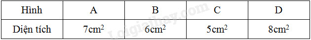 b) Hình D có diện tích lớn nhất là 8cm2