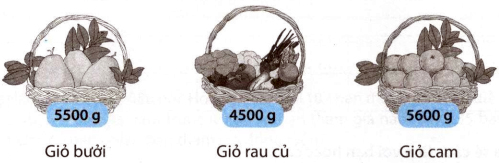 b) Giỏ nặng nhất là: giỏ cam (vì 4500g < 5500g < 5600g)