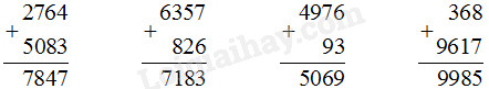 – Thực hiện phép cộng các số cùng hàng lần lượt từ trái sang phải.